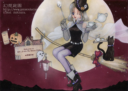 当初、KFSコミックイラストグランブリ用に考えたネタです(^_^;)。下絵(トレースダウン前の下描き)を上げたところで出品を断念してそのまま放置してました(^_^;)。そのままお蔵入り〜なかわいそうなコになるところ、めでたく日の目をみました(^_^)v。11月に入ってから描きはじめたので、ちょっとかぼちゃやおばけ達、ハロウィン色を減らしてみた・・・まだいるんだけどね・・・(^_^;)。それにしても、さっさと仕上げようと、B5にしたはずなのに、いつものン倍の時間が・・・(^_^;)。いつもならエアブラシを使うところをフォトショップでやったせい・・・マウス疲れた〜指つりそう・・・(^_^;)。まだまだこなせない咲麗です。